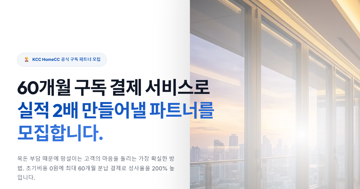 KCC홈씨씨 본사에서 인증한 파트너사에는 구독솔루션을 100% 무료로 제공해 드립니다.